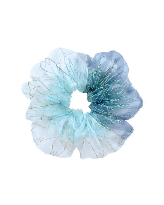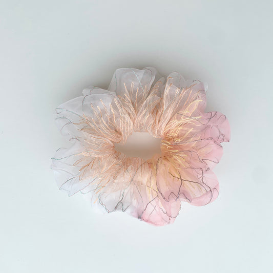 2色のオーガンジーを使用したバイカラーシュシュ。