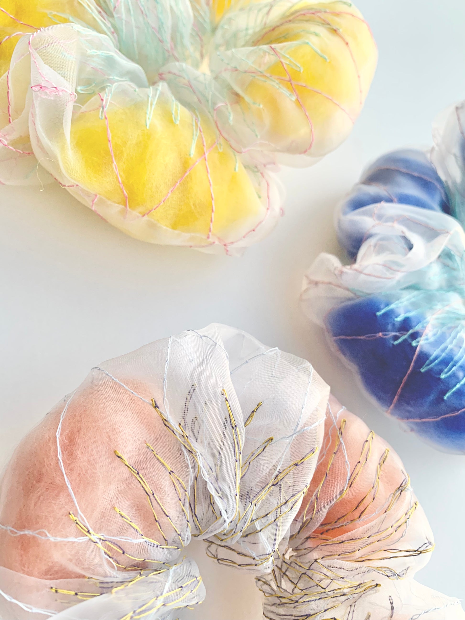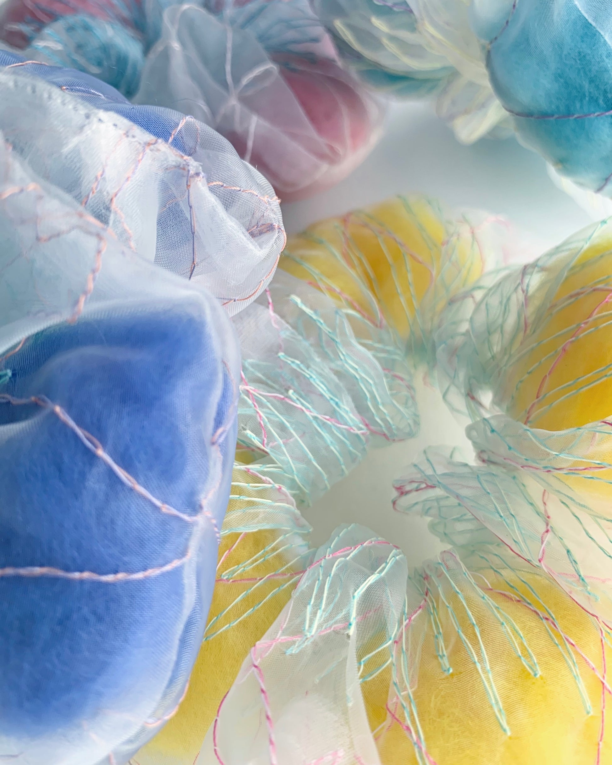 △オーガンジー生地にフリーハンドで柄を入れておりますので、柄の出方が1点1点多少異なります△